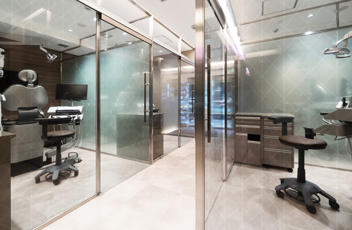 充実した医療設備とラグジュアリーな院内です。治療スペースはすべて個室になっております。