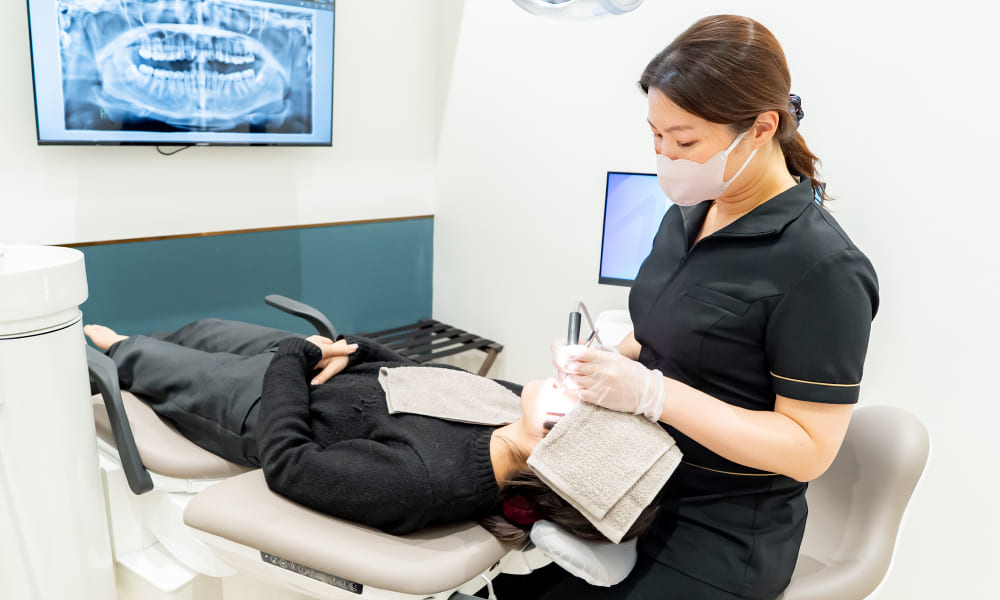 歯周病は日本では30代以上のほとんどの人がかかっている病気です。 当院では「なるべく歯を抜かない」ことを可能にした、根本的な歯周病治療を行っています。 歯科衛生士がプロフェッショナルケアで、歯ブラシでは届かない汚れや細菌を極限まで減少させます。